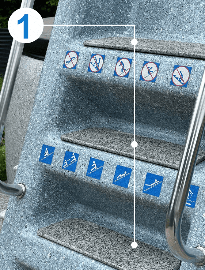 - Ступени горки покрыты антискользящим покрытием из вспененного каучука;